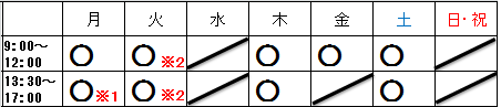施設の診療日・時間は施設側の意向で変更になる場合もございますので、
